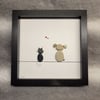 Pebble art is behind glass to protect pebbles and give a professional appearance.